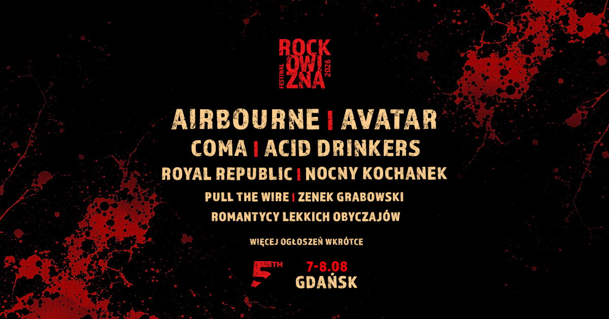 Zapraszamy na 5-edycję Festiwalu Rockowizna, która już w dniach 7-8 sierpnia 2026 odbędzie się w Gdańsku (Polsat Plus Arena Gdańsk -parking P3/P4). Doskonała muzyka, przyjazna atmosfera i najlepsza publiczność. Największa, rockowa trasa festiwalowa w Polsce ponownie połączy pokolenia.